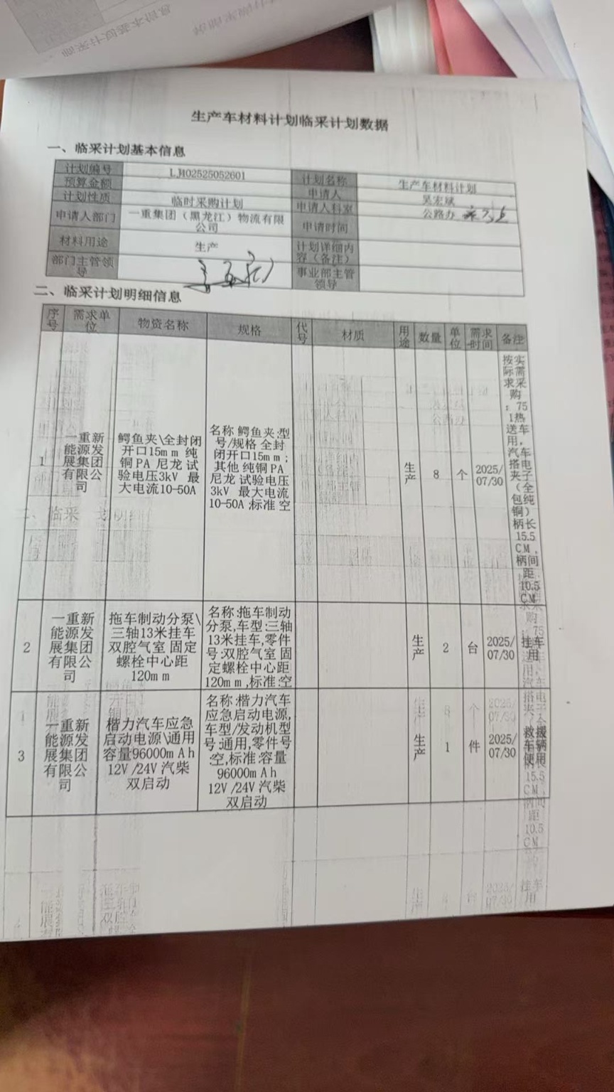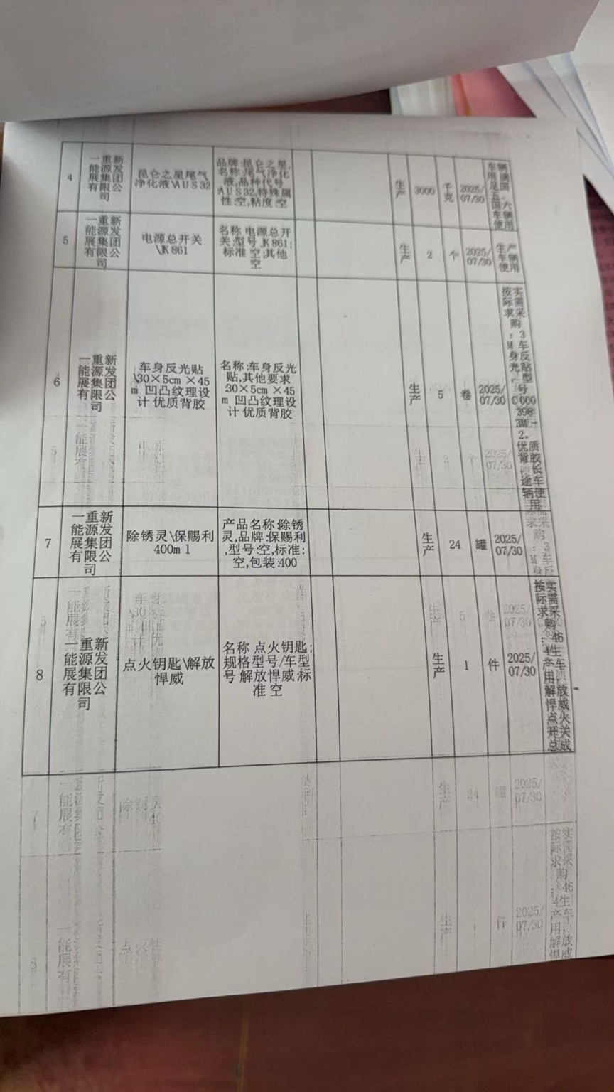 项目名称: 公务车备件(7月)计划