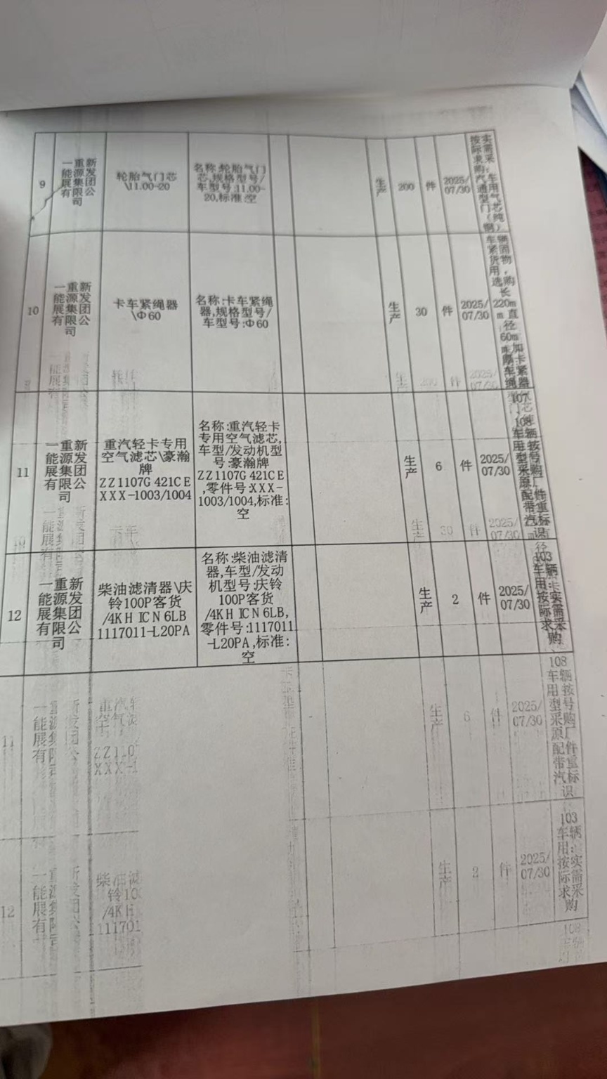 公务车备件(7月)计划[ WZ2025070651 ]-采购公告