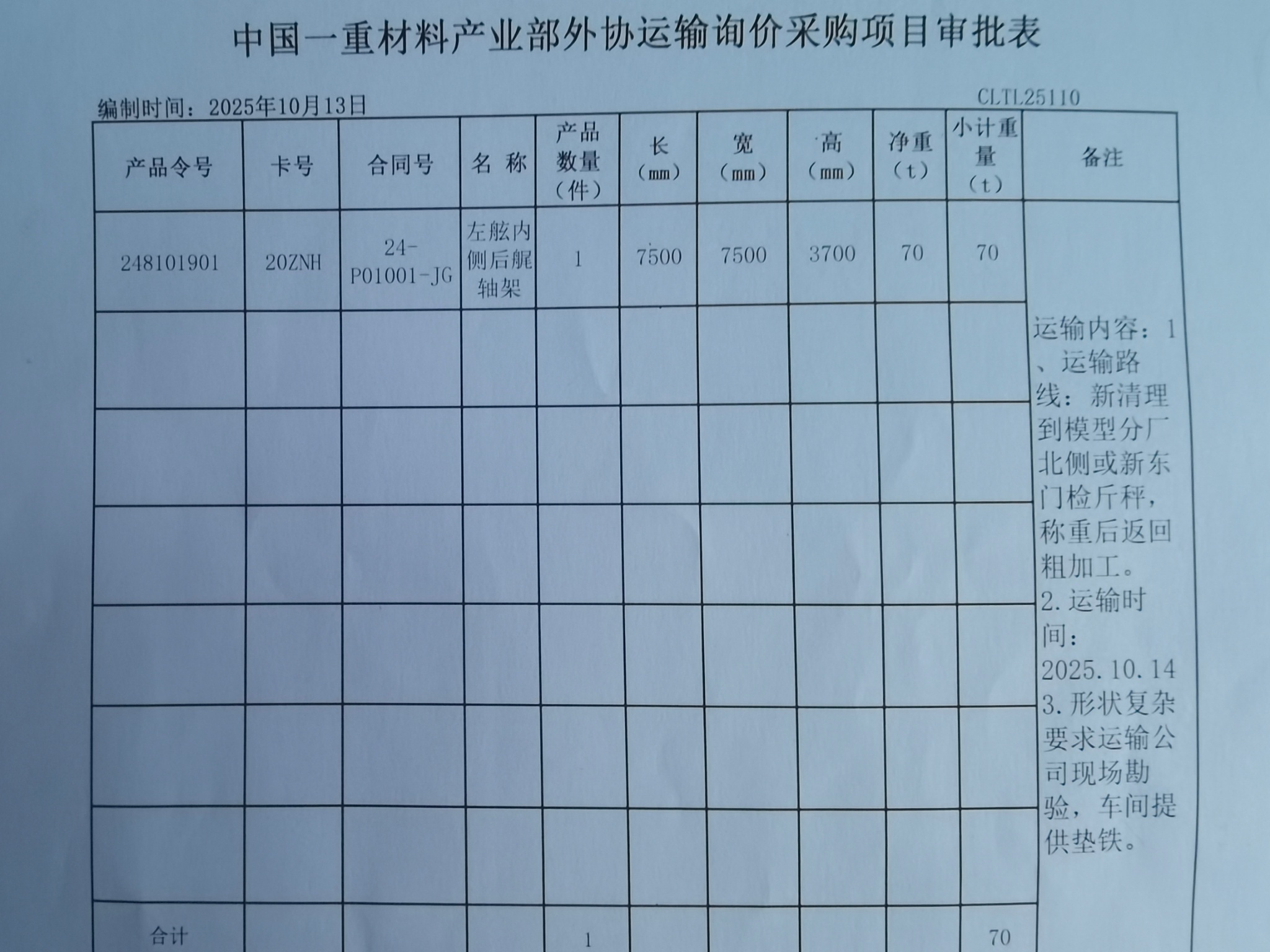 1013 富区厂内倒运左舷内侧后艉轴架运输[ QT2025106861 ]-采购公告